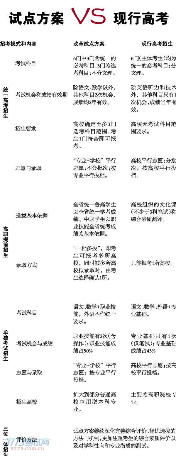 浙江高考改革试点方案昨日出台和现行高考有较大改变