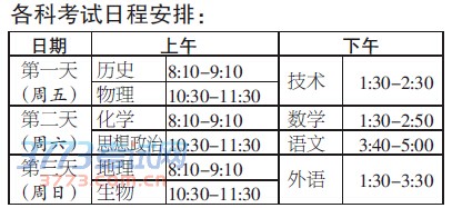 学业水平考试各科分值为:语文、数学各100分,外语150分,思想政治、历史、地理、物理、化学、生物、技术各70分。评卷由省教育考试院统一组织。