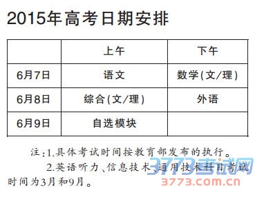 2015年高考日期安排