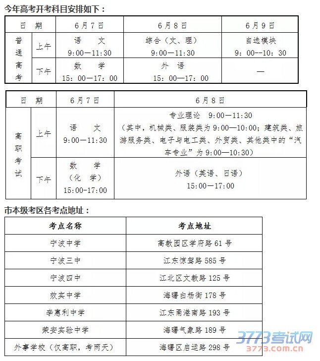 今年市本级考区有5930名考生,设7个考点,分别是宁波中学、宁波三中、宁波四中、效实中学、李惠利中学、荣安实验中学和宁波外事学校,其中宁波外事学校为高职考点,仅考7日、8日两天。在市教育考试院报名点报考的社会考生,可于6月3日至5日到市教育考试院(开明街89号)214室凭本人报名证领取准考证。