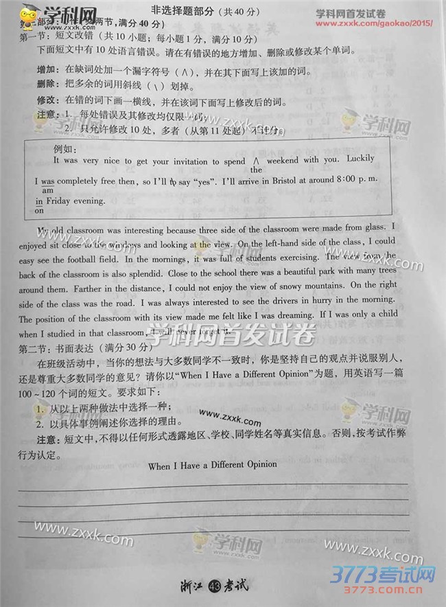 [组图]2015浙江高考英语试题及答案发布