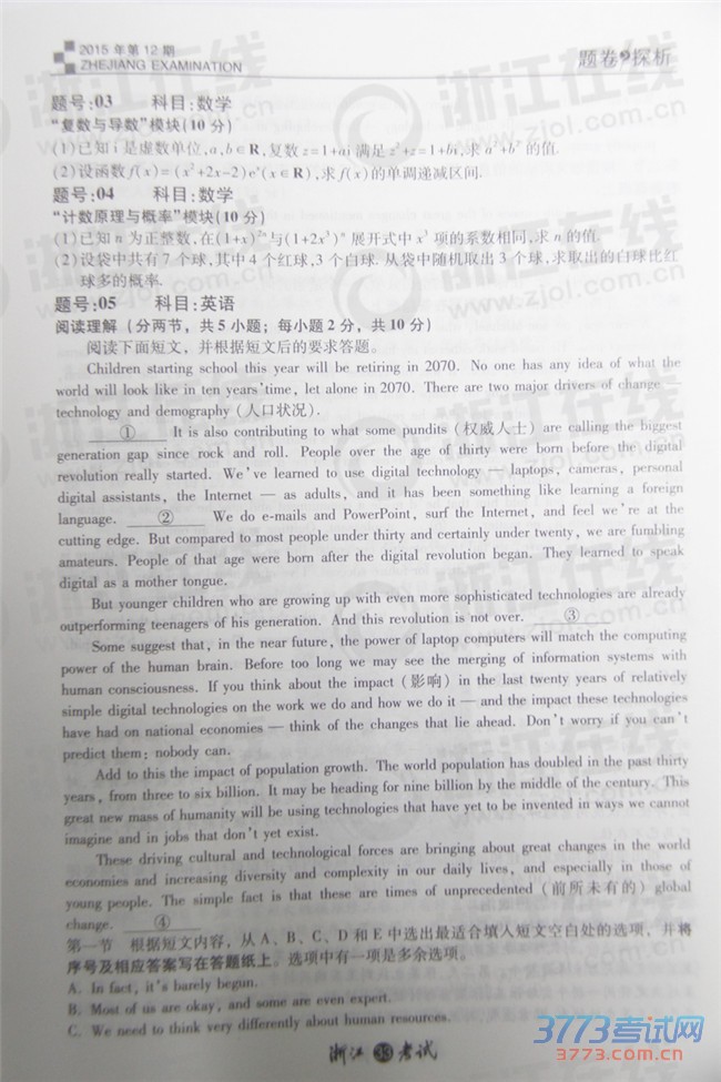 [组图]2015浙江高考自选模块试题及答案