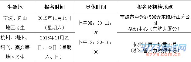[组图]东方航空2016浙江高中招飞简章时间地点