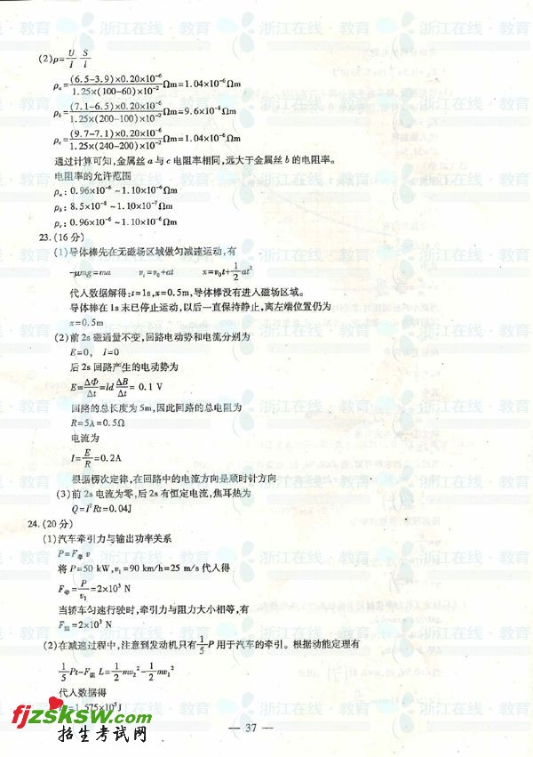[组图]浙江省2011年高考理科综合真题及答案
