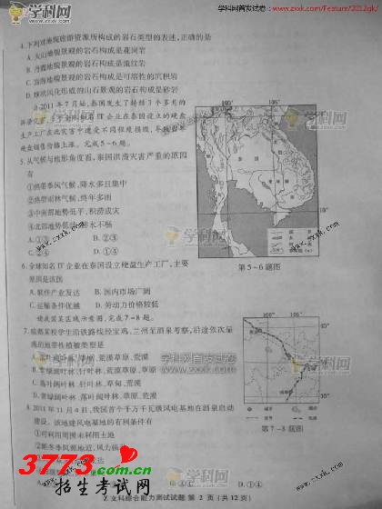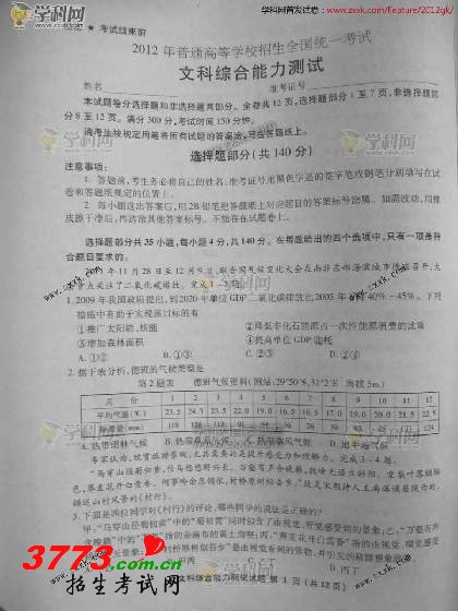 [组图]2012浙江高考文科综合试题及答案