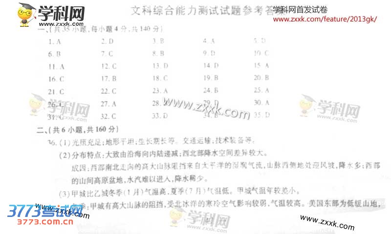 浙江高考][组图]2013浙江高考文综试题(答案请关注)