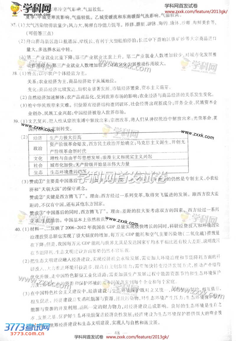 [组图]2013浙江高考文综试题及答案