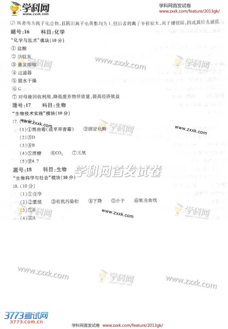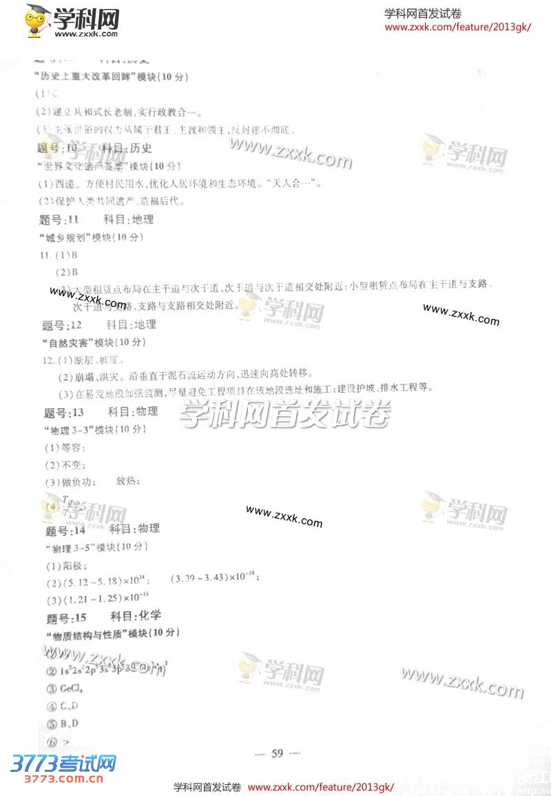 [组图]2013浙江高考自选模块试题及答案
