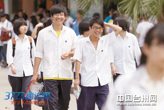 台州市第一中学考点,考生们轻松走出考场。 记者 潘侃俊 摄