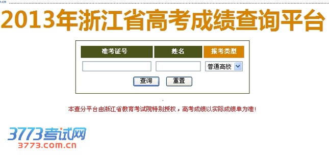 浙江在线2013浙江高考成绩查询入口: http://cf.zjol.com.cn/