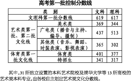 浙江省教育考试院昨天发布2013年高考第一批控制分数线:文科619分,理科617分。昨晚九点之后,考生即可以凭准考证号和姓名登录浙江省教育考试网(www.zjzs.net)查询高考成绩。