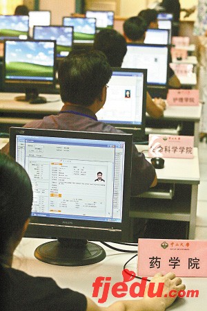 电脑录取也就意味着,能否投档完全由考生成绩决定,分数不够就不可能被录取。在华南理工大学录取场,华工党委书记刘树道就笑着说:“我们投档线理科是582分,差一分都不行。如果差一分,就是我儿子也上不了华工。”由于严格实施“阳光工程”,也没有家长再来“走后门”了,录取场静悄悄的,学校和老师都省心不少。