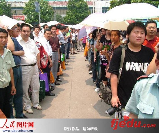人民网讯 2009年6月7日上午,时值气温已达34摄氏度。高考考生们在考场内进行着第一场语文的考试。记者在合肥市第四中学考点,用镜头记录下考场外家长们顶着烈日期盼、焦急的等待过程……(傅军)