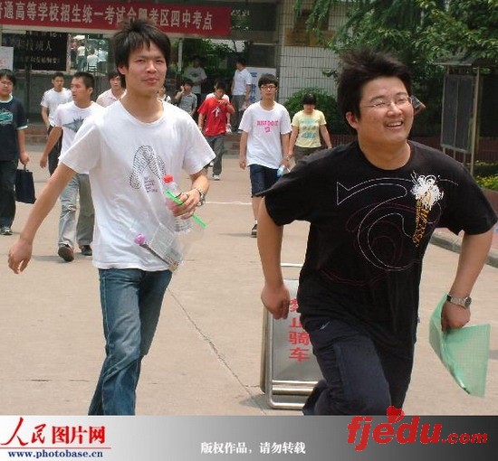 考生满怀信心跑出考场。  版权作品,请勿转载。