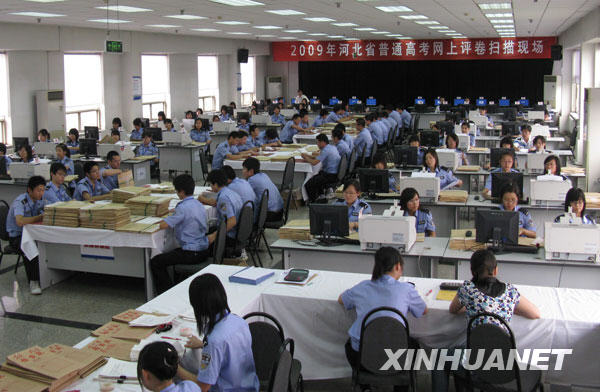 这是设置在河北省考试院内的高考网上评卷扫描现场(6月12日摄)。新华社记者 吴晶 摄