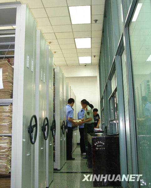 这是设置在河北省考试院内的高考网上评卷扫描现场的机要室。经过专门培训的扫描工作人员在武警陪同下,经过严格登记,从机要室提取答题卡并送入扫描现场(6月12日摄)。新华社记者 吴晶 摄