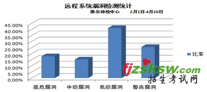 与此同时,赛尔体检中心通过对357所高校的提交的网站进行web应用漏洞和系统漏洞检测(如图2),发现357所高校网站有97.3%网站存在安全漏洞,而高危、中等漏洞的比率都分别占到了16.1% 和12.7%。由此可见,这种安全隐患必须引起各大中小学在内的站点管理员的重视,坚决杜绝安全事件的发生.