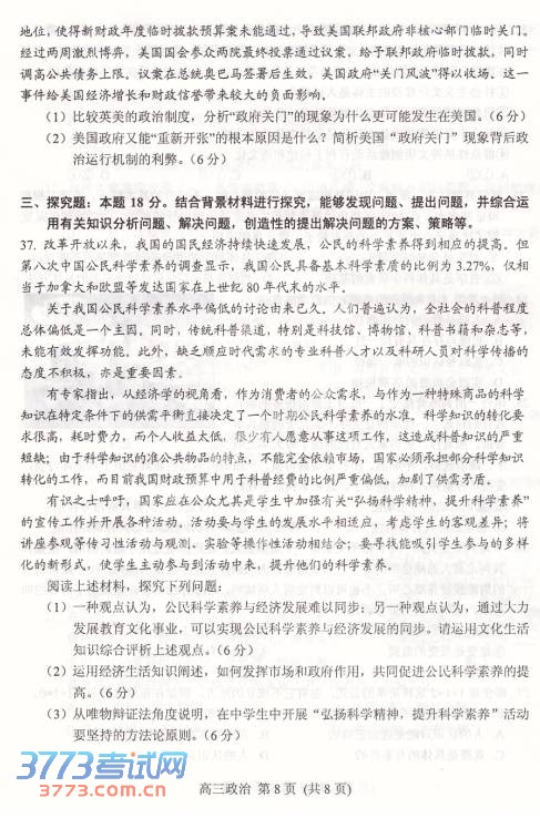 [组图]2014苏锡常镇四市一模政治试题及答案