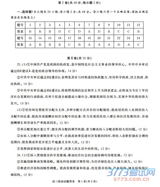 域结构。(2分)高三政治试题答案 第2页(共2页)