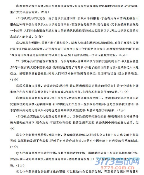 27.①联系具有普遍性和客观性。为治疗疟疾,屠呦呦团队与国内其他机构合作,从《肘后备急