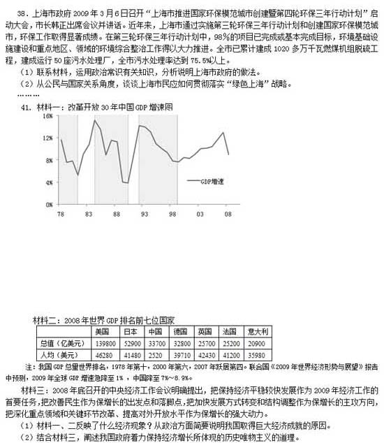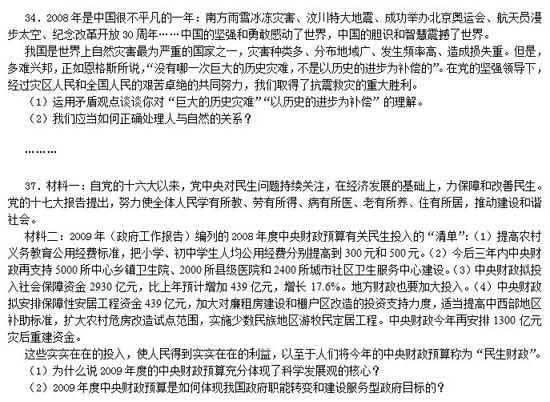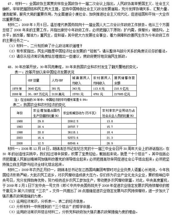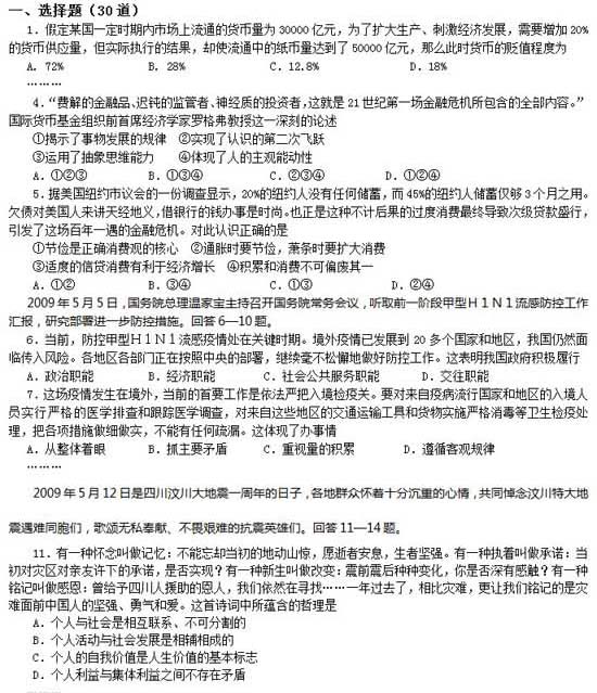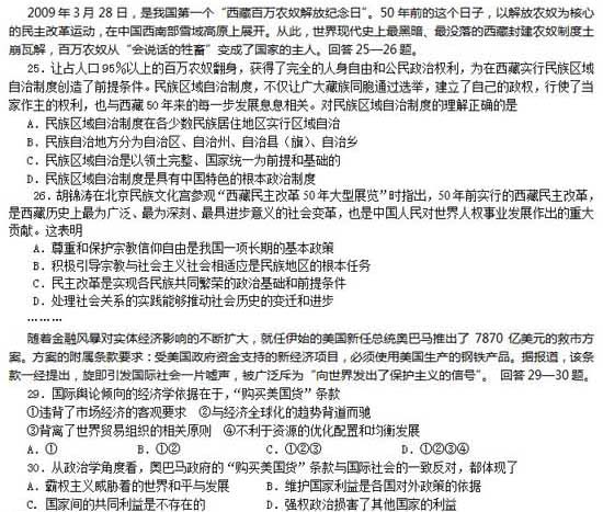 [组图]2009年高考政治模拟试题及答案(大纲卷)