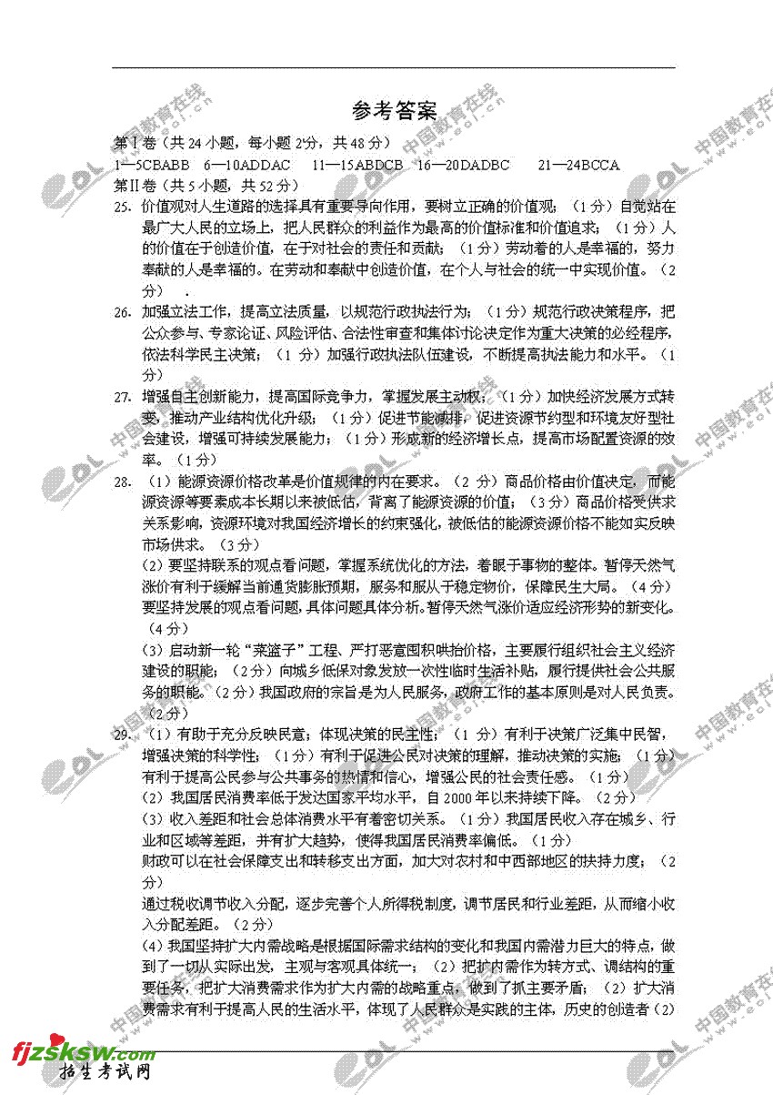 [组图]北京东城2010-2011上学期期末检测试题政治