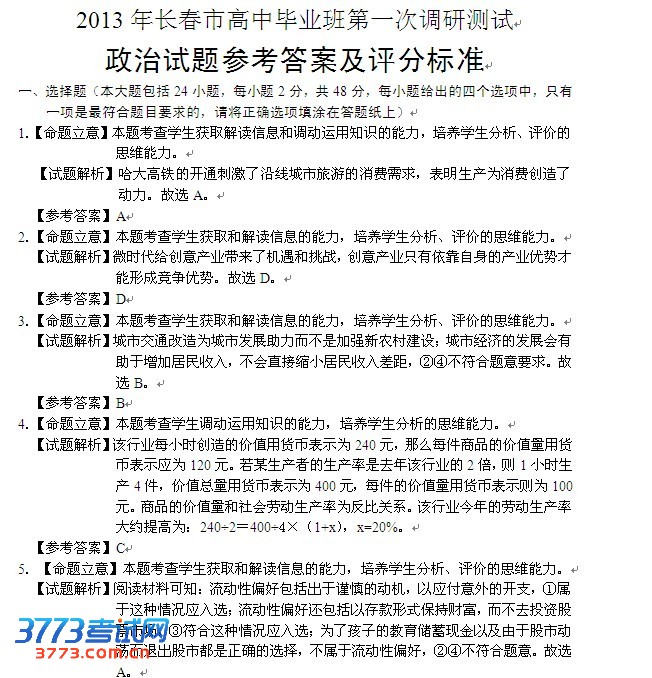 2013长春市高三政治一模考试详细试题还没公布,我们先来看看这份试题的答案讲解:点击免费下载。