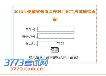 2013年安徽省普通高校对口招生考试成绩查询