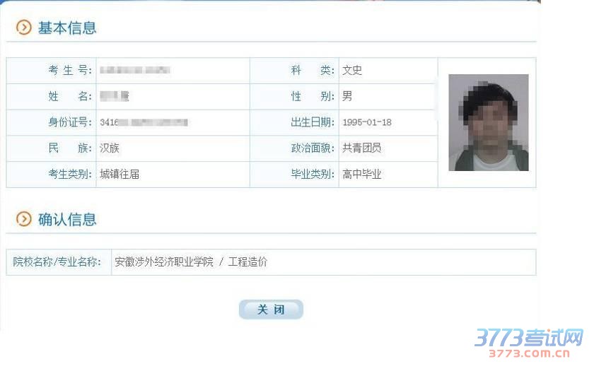 3. 退出后重新登录gkbm.ahzsks.cn,可以查询到自己确认的院校:
