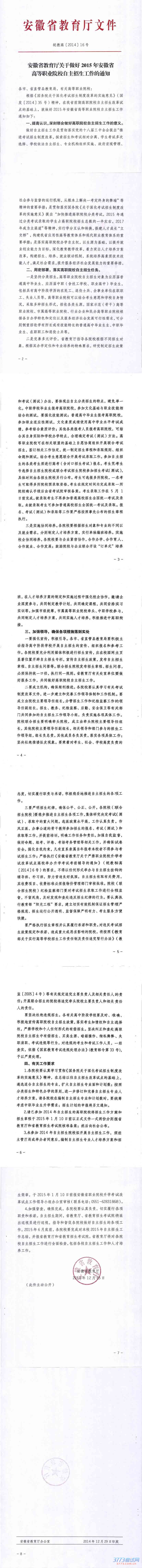 安徽省教育厅关于做好2015年安徽省高等职业院校自主招生工作的通知