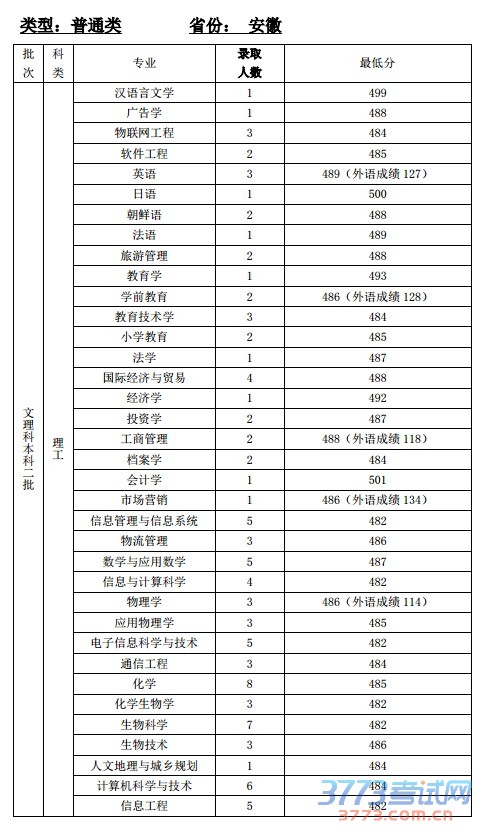 [组图]2014天津师范大学安徽二本录取分数线
