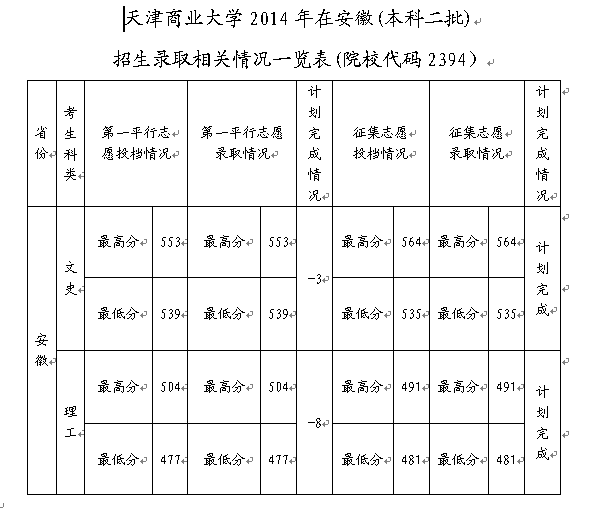 [图文]2014天津商业大学安徽二本录取分数线情况