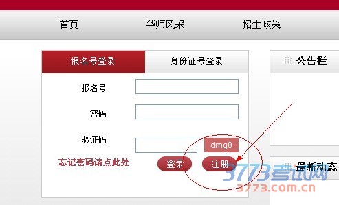 2、在网页左上角报名版块,点击“注册”按钮。