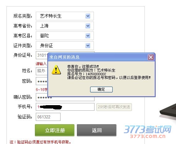 4、注册成功,请牢记自己的网上报名号和密码。