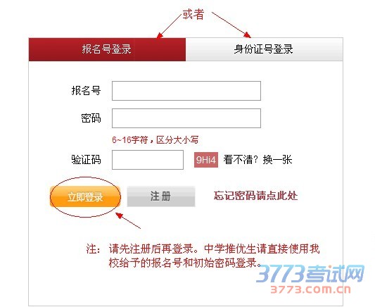 5、通过网上报名号和密码(或者身份证号码和密码)登录。