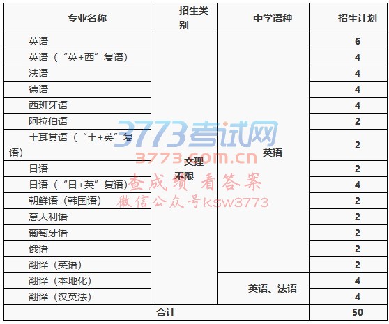 考试内容:校考成绩满分为300分,包括外语笔试(150分)、语文笔试(100分)和面试(50分)。其中,外语和语文笔试两科一张卷,具体考试安排请关注报名系统,不再另行通知。