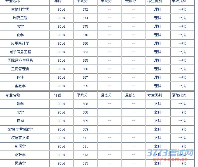 [图文]2014中央民族大学在陕西文理科录取分数线