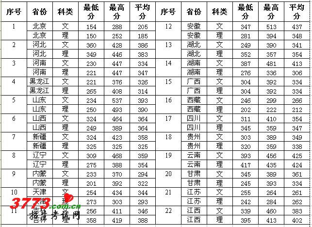 [图文]北京社会管理职业学院2010年各省录取分数线统计表
