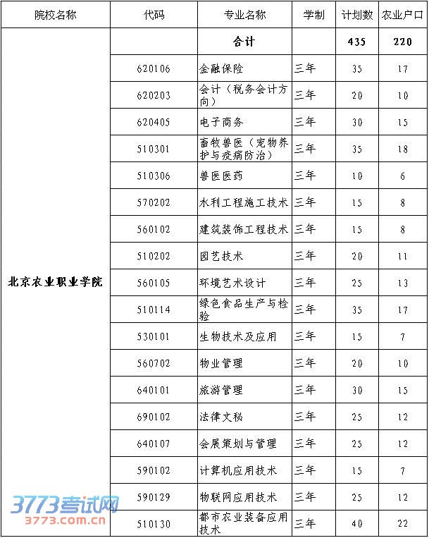 [图文]北京农业职业学院2014年自主招生计划