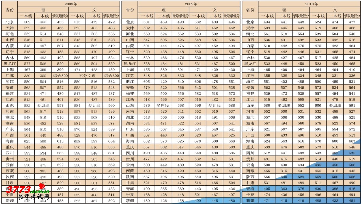 重庆工商大学2008 2009 2010年各省市二本分数线 重庆工商大学2008 2009 2010年各省市二本分数线