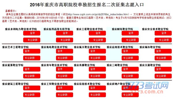 2016年重庆市高职院校单独招生报名二次征集志愿入口