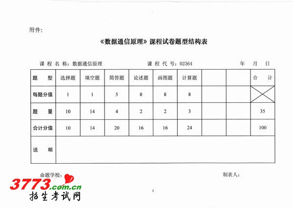 [图文]2012重庆高职单招数据通信原理课程试卷题型结构表