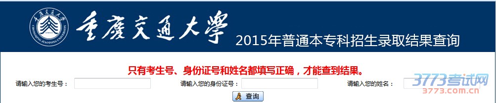 3773高考网讯 2015年高考录取陆续进行,考生可以登录重庆交通大学本科招生网查询录取结果。按重庆交通大学录取规则被录取的考生,则显示重庆交通大学录取的专业,未被录取的考生则显示“未录取”。