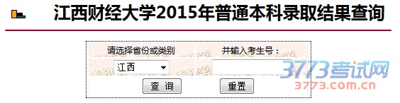 3773高考网讯 2015年高考录取陆续进行,考生可以登录江西财经大学本科招生网查询录取结果。按江西财经大学录取规则被录取的考生,则显示江西财经大学录取的专业,未被录取的考生则显示“未录取”。