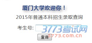 3773高考网 2015年高考录取陆续进行,考生可以登录厦门大学本科招生网查询录取结果。按厦门大学录取规则被录取的考生,则显示厦门大学录取的专业,未被录取的考生则显示“未录取”。