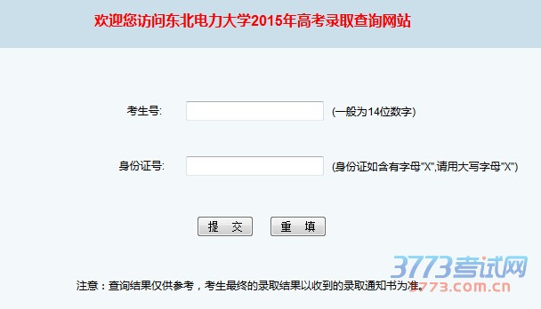 >>>东北电力大学2015年高考录取结果查询入口<<