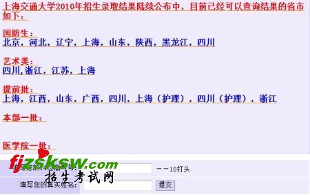 上海交通大学2010年高考录取结果查询系统开通,点击此处查看