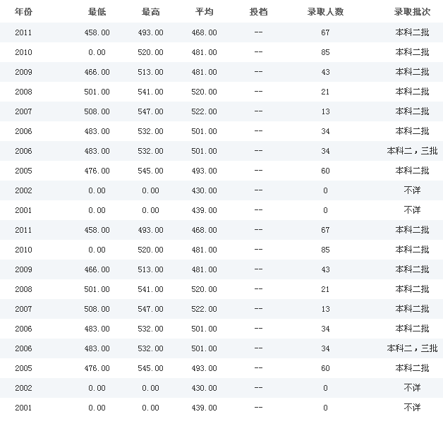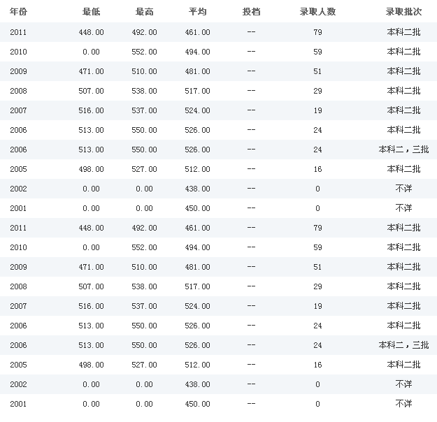 文科历年各批次录取分数线