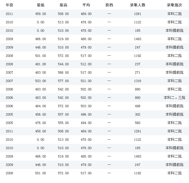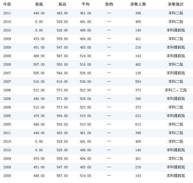 文科历年各批次录取分数线