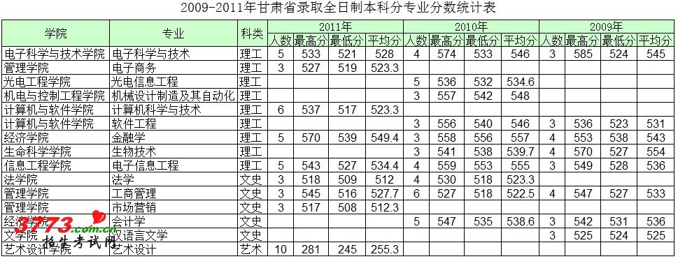 [图文]深圳大学2009年2010年2011年甘肃录取分数线